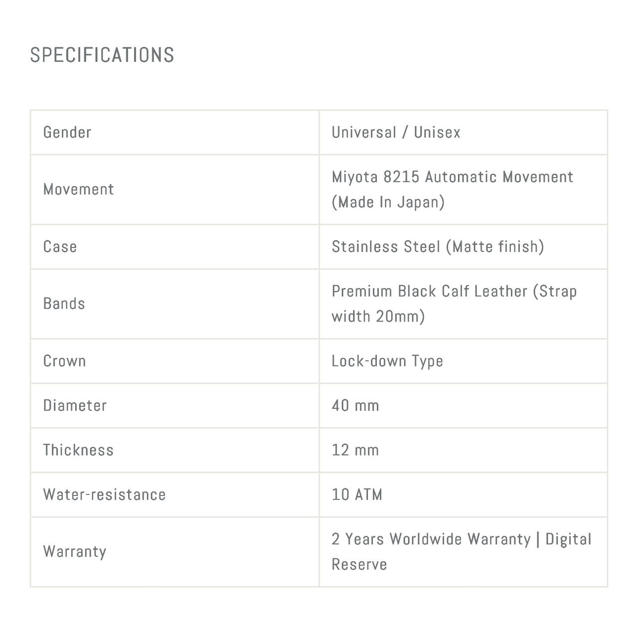 Powered by a premium Japanese Miyota Automatic Movement, the watch ensures reliability, precision, and craftsmanship synonymous with fine horology.